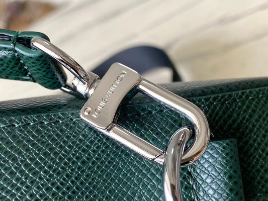 AVENUE MESSENGER 22 IN FOREST GREEN CALFSKIN
