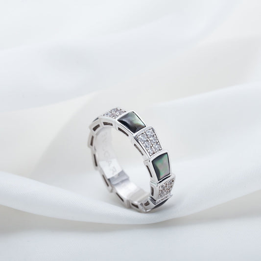 [Clover Jewelery]SERPENTI RING SILVER DIAMOND BLACK MOP 3MM