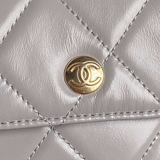 BOWLING BAG 29 IN GREY CALFSKIN GOLD HARDWARE