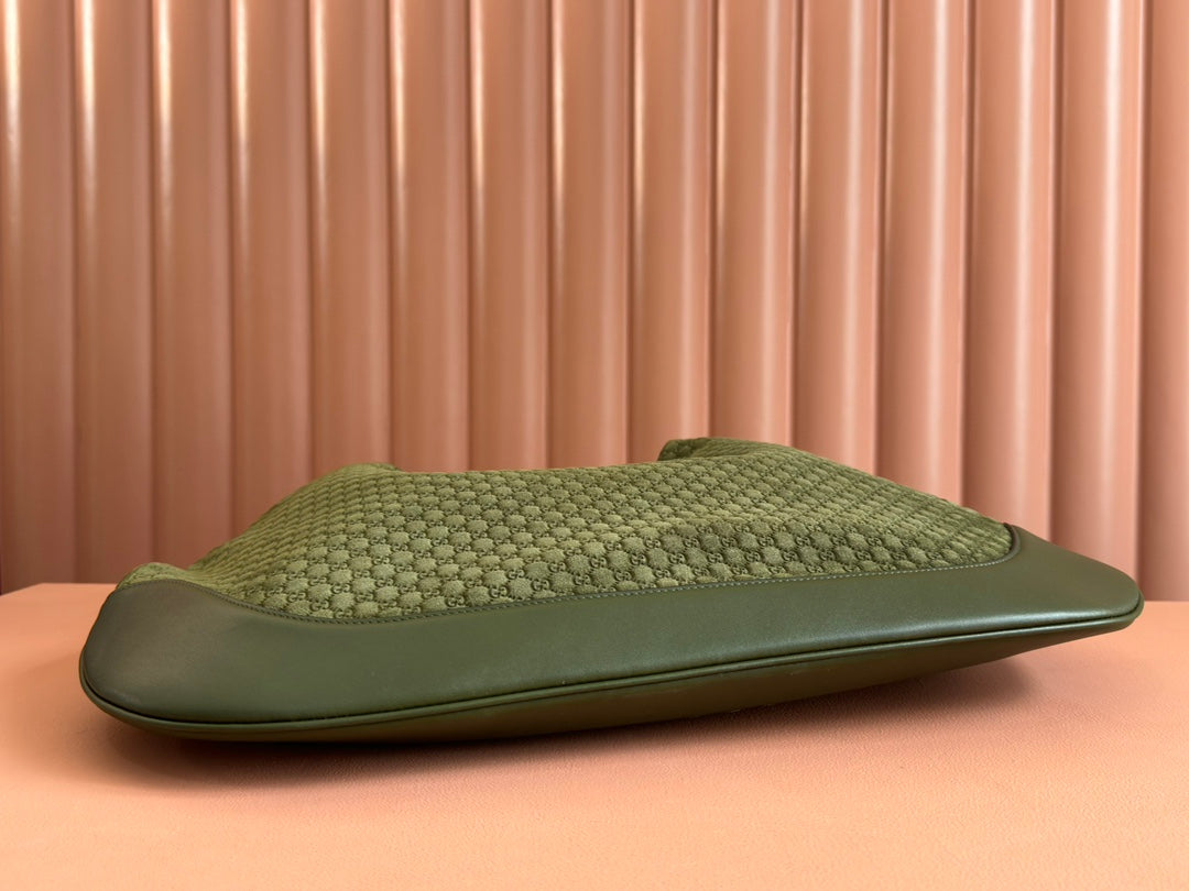 B LARGE SHOULDER BAG 49 IN ARMY GREEN GG EMBOSSED SUEDE