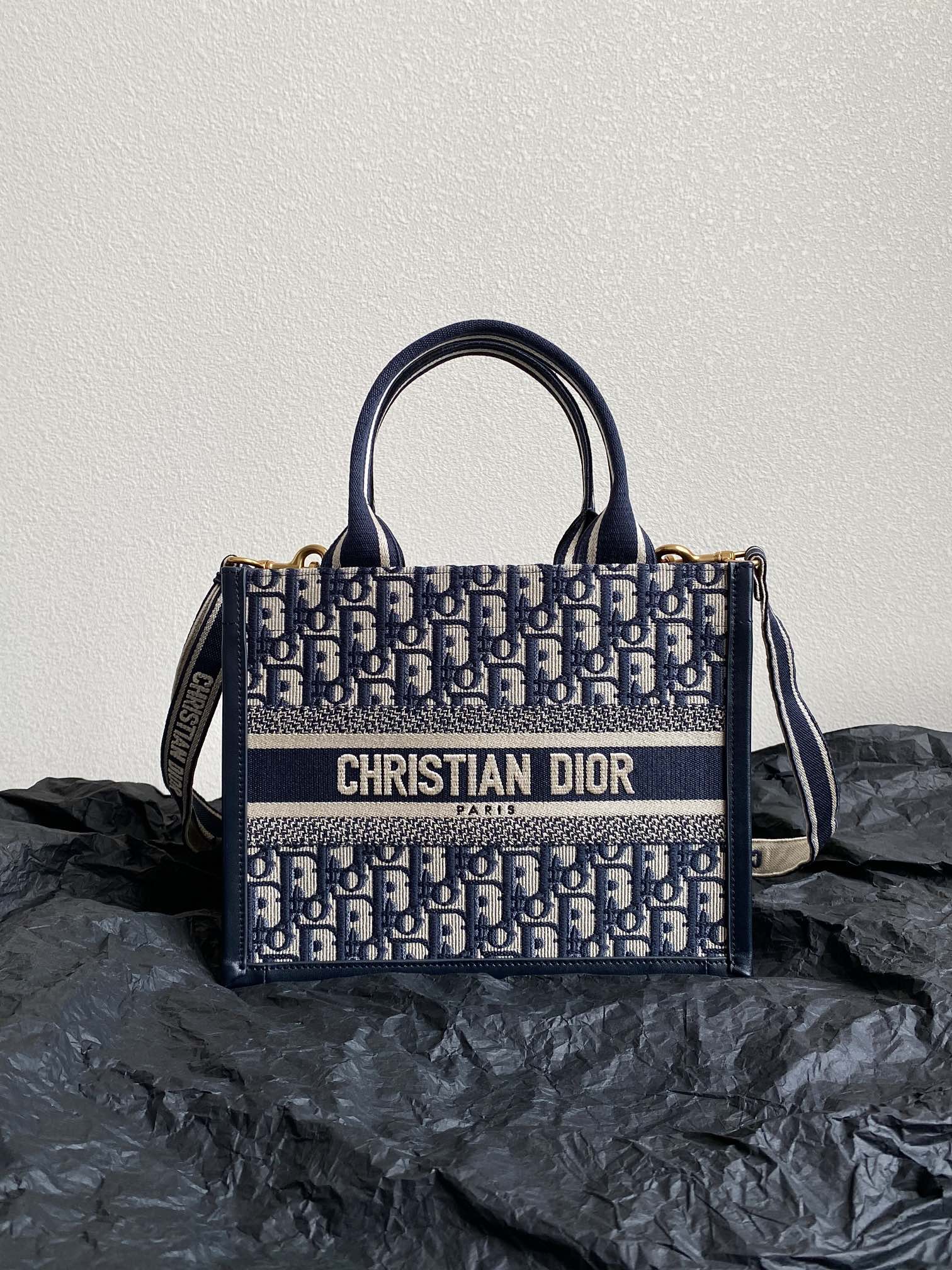 MINI BOOK TOTE 26 BLUE OBLIQUE EMBROIDERY