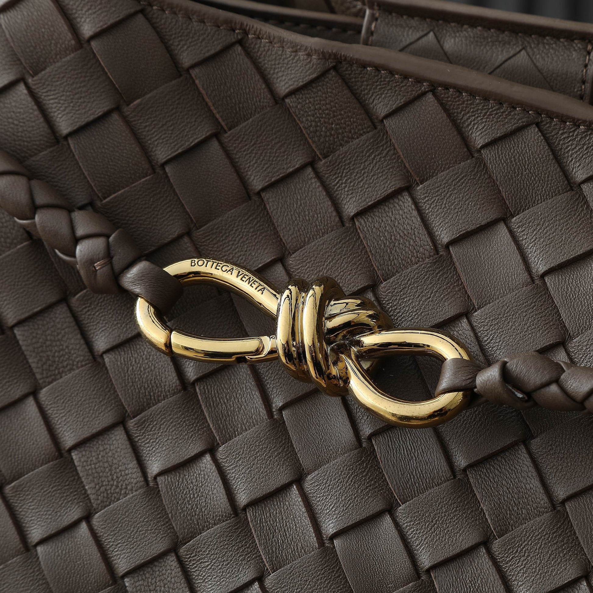 BOTTEGA VENETA 25S LARGE ANDIAMO 42 IN DARK BROWN CALFSKIN GOLD HARDWARE