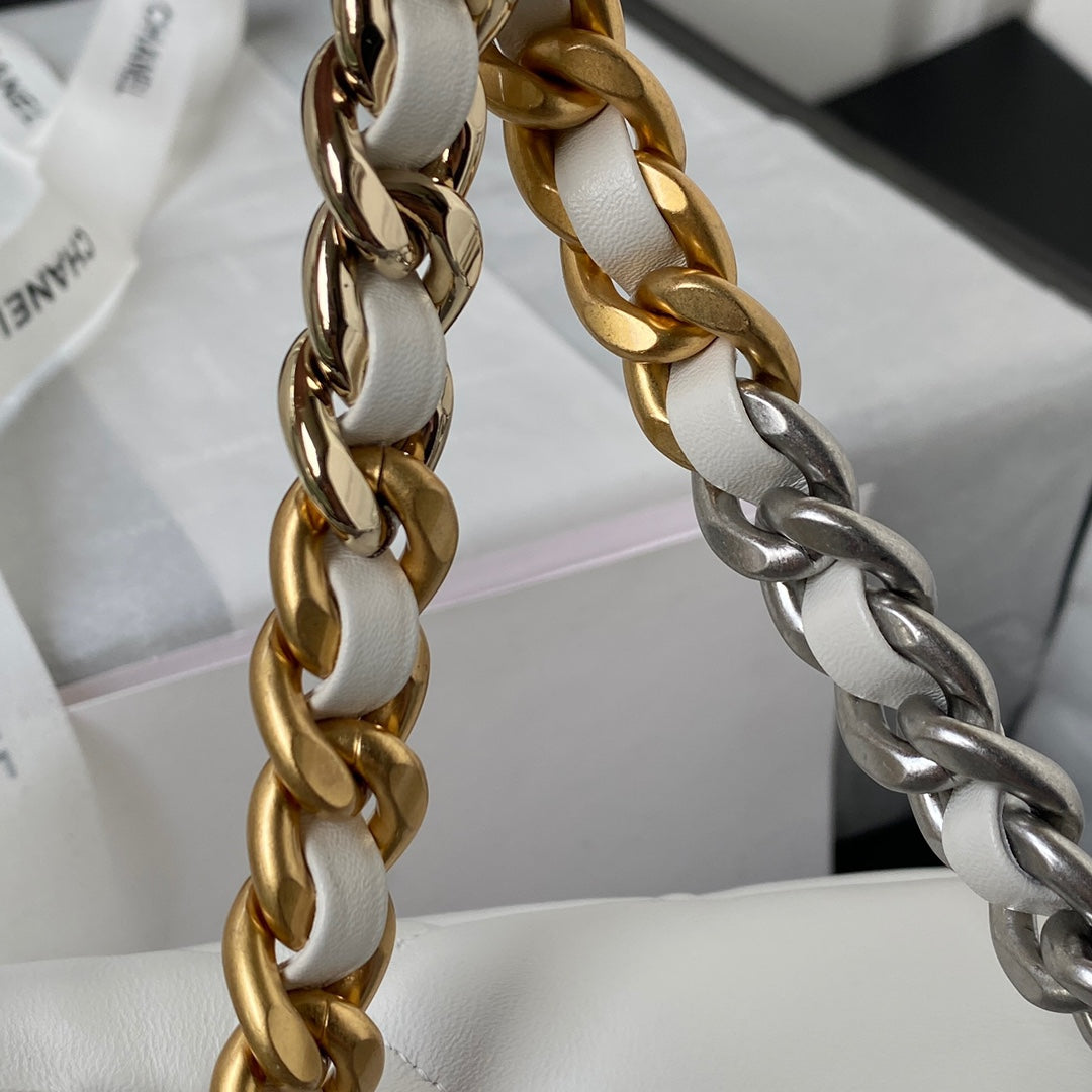 CC LARGE 30 FLAP BAG IN WHITE LAMBSKIN