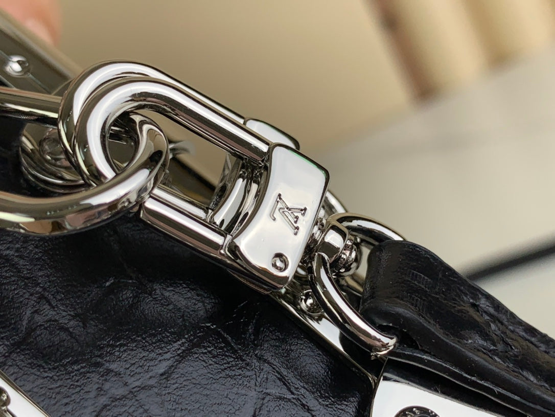 SLIM TRUNK 23 IN BLACK CROCODILE PATTERN CALFSKIN SILVER HARDWARE