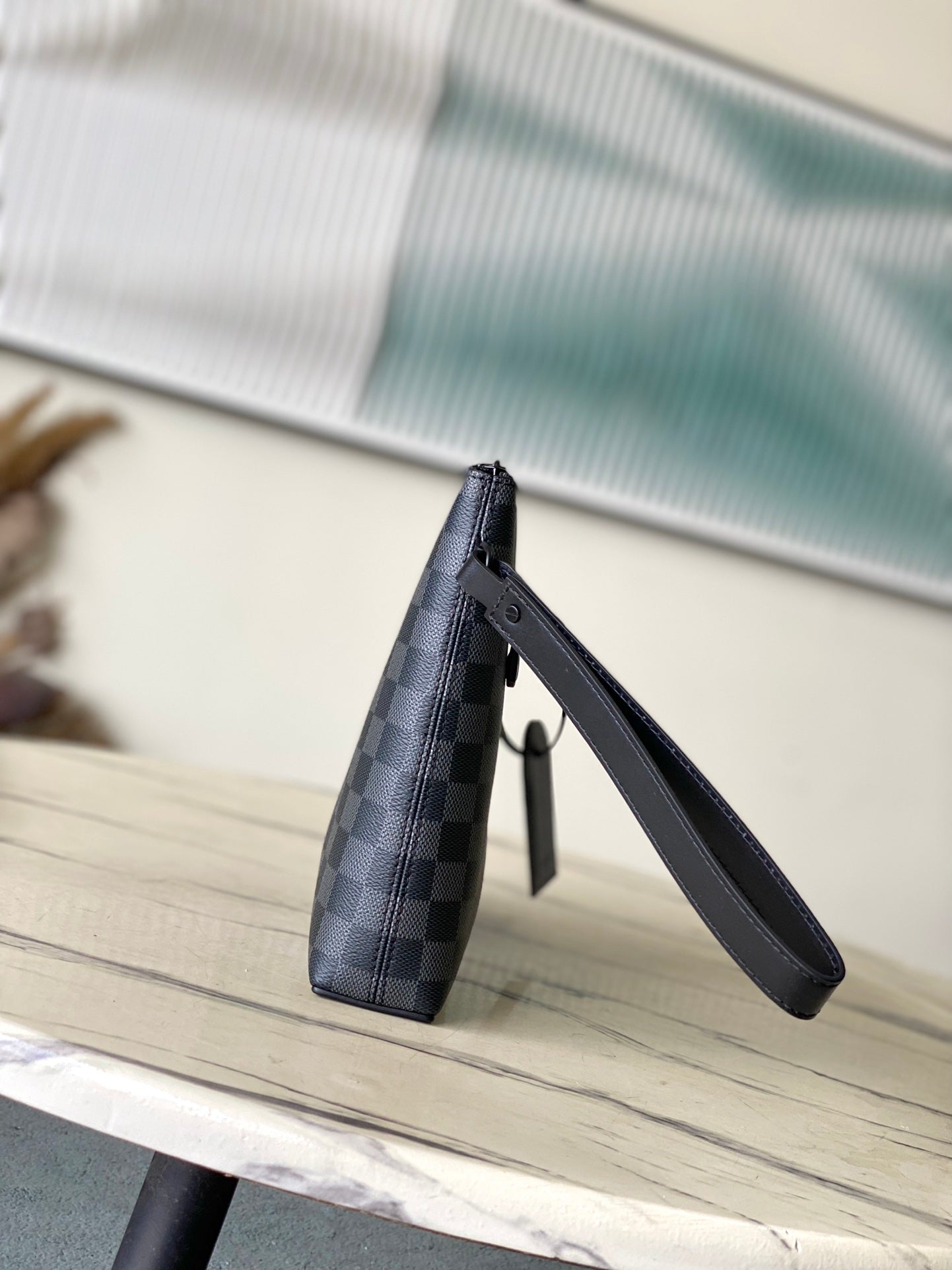 TAKEOFF POUCH 30 IN GREY BLACK DAMIER GRAPHITE CANVAS