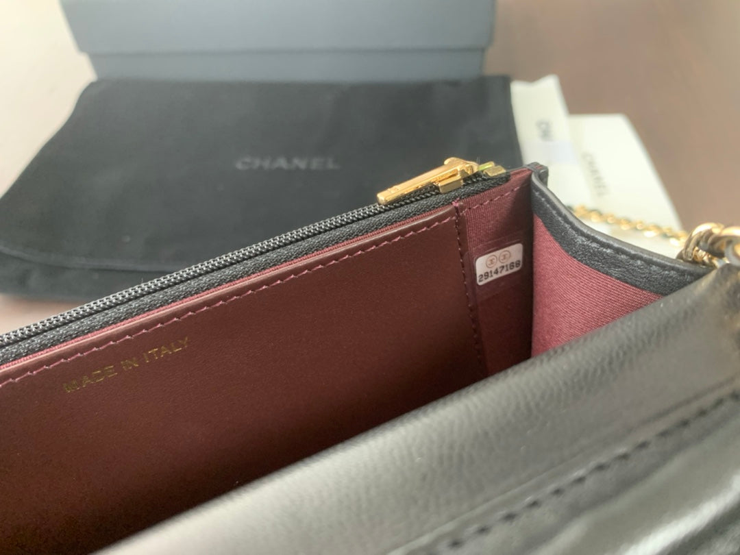 WOC 19CM BLACK LAMBSKIN GOLD HARDWARE